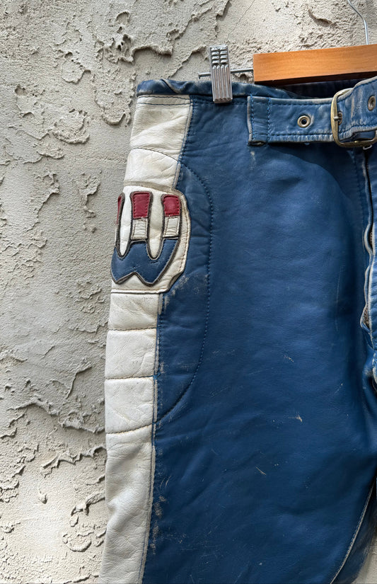 Sold outVINTAGE BLUE LEATHER RACING PANTS
